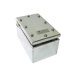 جعبه تقسیم/ترمینال باکس ضد انفجار استنلس استیل مدل SJB، با قابلیت نصب گلند پلیت، به همراه لولا، در 15 سایز از 263x163x160 تا 950x750x210